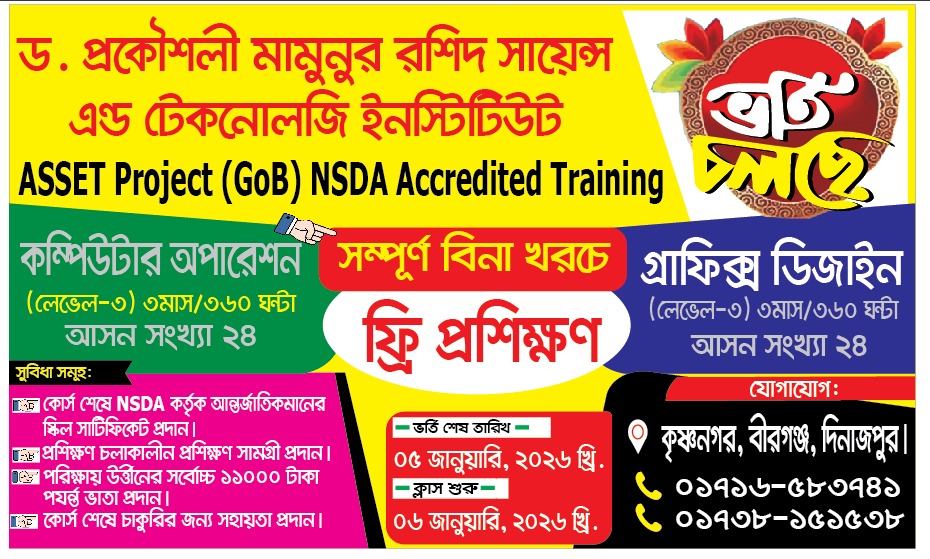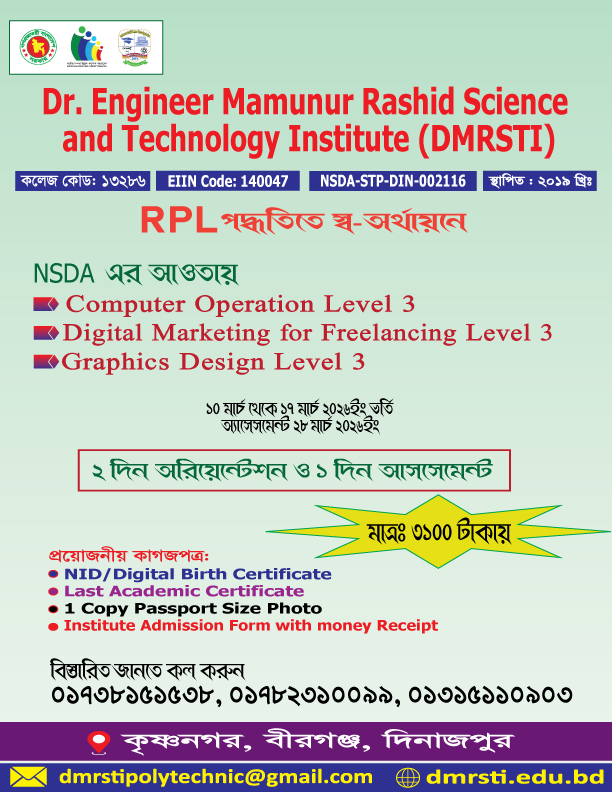 The Dr. Engineer Mamunur Rashid Science and Technology Institute (DMRSTI) is a renowned educational institution situated in the serene Krishnanagar village, Kalyani hat Post Office, nestled within the Birganj Upa Zilla of Dinajpur, Bangladesh….